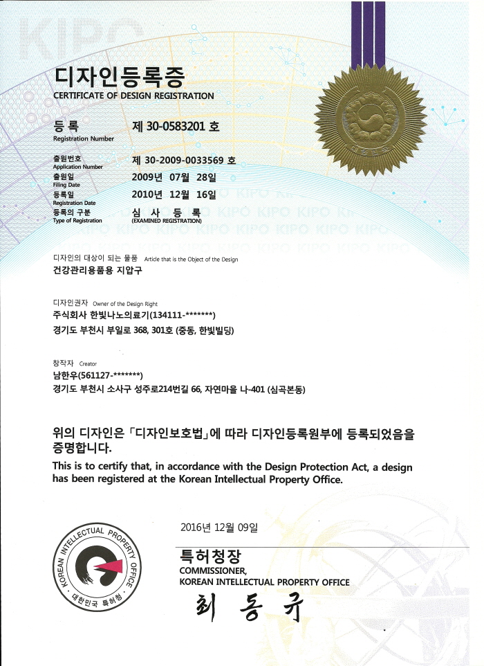 [certificate of design registration] Acupressor