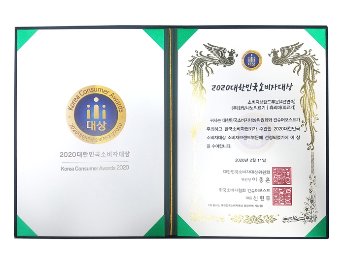 ÇѺû³ª³ëÀÇ·á±â´Â Áö³ 2¿ù 11ÀÏ Çѱ¹ÇÁ·¹½º¼¾ÅÍ¿¡¼ ¿¸° '2020 ´ëÇѹα¹ ¼ÒºñÀÚ´ë»ó'¿¡¼ ¿ÃÇØÀÇ ÃÖ°í Á¦Ç°»óÀ» ¼ö»óÇß½À´Ï´Ù.