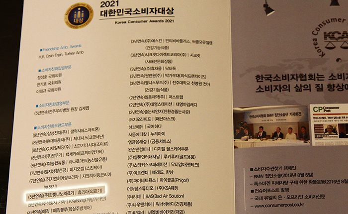 ÇѺû³ª³ëÀÇ·á±â´Â Áö³ 2¿ù 16ÀÏ ¼¿ï ¸íµ¿ ¼¼Á¾È£ÅÚ¿¡¼ ¿¸° '2021 ´ëÇѹα¹¼ÒºñÀÚ´ë»ó' ¿¡¼ ¼ÒºñÀÚģȺ귣µåºÎ¹® 5³â¿¬¼Ó ´ë»óÀ» ¼ö»óÇß½À´Ï´Ù.